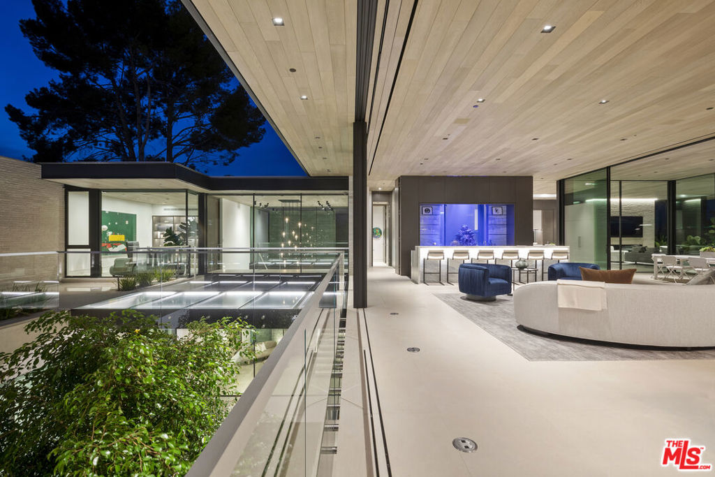 This striking, custom-built brand-new construction Paul McClean residence is located in the private and esteemed Trousdale Estates neighborhood. The home showcases approx. 10,500 square feet of clean lines and vaulted ceilings, with six ensuite bedrooms and nine total baths. A multitude of floor-to-ceiling casement windows encompass views of the canyon, mountains, downtown Los Angeles cityscapes and the Hollywood sign. Amenities are all accounted for within the residence's design: a gym with a dry sauna and steam room, a movie theater with reclining seating for 10, a stunning aquarium with fish and coral, office, a wine bar and eight-car garage. The open chef's kitchen is built with Wolf appliances and an oversized marble island. A secondary back kitchen is designed for ease of catering/prep. The primary suite with a fireplace features stunning views overlooking the pool, canyon and city. Dual spacious closets and toilets in the primary bathroom as well as a large shower and stunning stone soaking tub. Outdoor features of the 19,614-square-foot lot include an infinity pool and spa, a heated loggia with outdoor dining and seating areas, a kitchen with a TV and bonus bathroom that all provide for easy and luxe open-air enjoyment. An architectural triumph, this sophisticated estate presents a truly elevated lifestyle experience in one of the most esteemed neighborhoods in Los Angeles.