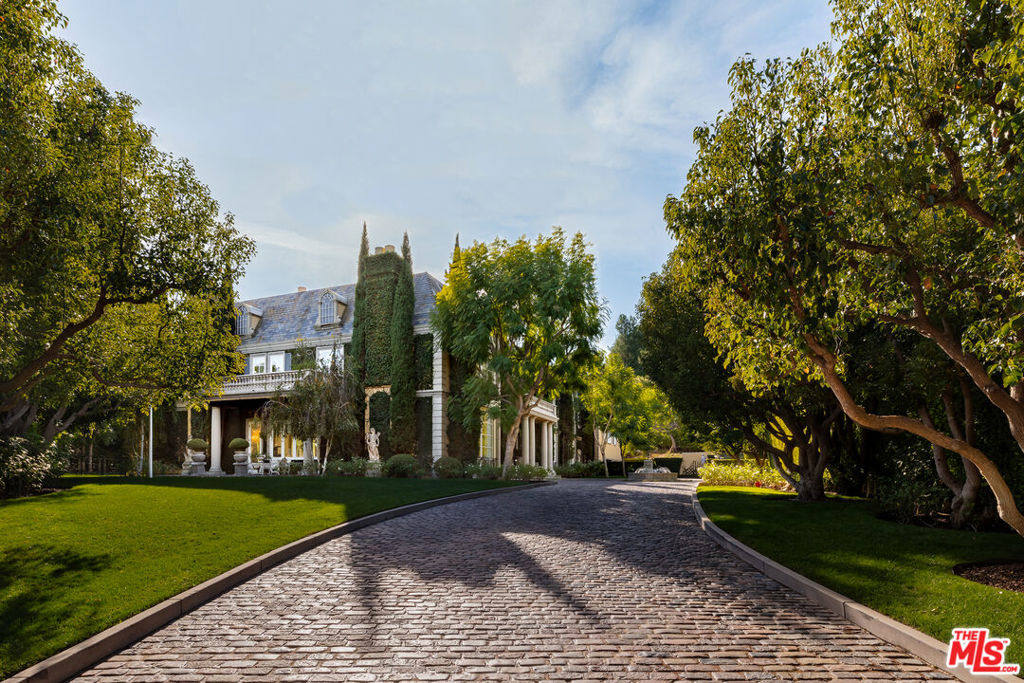 Hidden on a sprawling approx. two-acre parcel within coveted, ultra-private, guard-gated, and celebrity-rich North Beverly Park is this resplendent French Chateau of the highest quality, promising a life of endless comfort and enduring enjoyment. Rolling lawns are enveloped by lush, mature trees to form a peaceful traditional estate of timeless appeal and modern classic elegance. A marvelous double-height foyer is accented by coffered gold-leaf ceilings as the most impeccable, finest finishes abound throughout. Recently redesigned by interior design firm Elysienne of Los Angeles, the exceptional estate comprises nine bedrooms and thirteen bathrooms spanning more than 16,000 square feet of living space. Luxurious, first-class amenities include billiard/card room, plush theatre, formal living room with wet bar and adjacent library, wine cellar, and gym. The country kitchen exudes rustic charm with copper farm sink, wood-burning fireplace, recipe desk, butler's pantry, six ovens, La Cornue stove, and exposed beams overhead. The Parisian primary wing includes dual bathrooms, one of which is complete with sauna and steam shower, and closets plus an attached study/office, and all secondary bedrooms are en-suite. There are antique French chandeliers throughout the residence as well as seven wood-burning fireplaces in total. Floors are marble, wood, and travertine. The mansion's park-like grounds present a resort-like pool, two pool cabanas with individual outdoor televisions, guest house, full lighted tennis court with viewing gazebo, outdoor kitchen pavilion with two hidden TVs, and al-fresco entertaining patio, vegetable and herb gardens, vineyard, and expansive Philadelphia cobblestone motor court. A complete-property backup generator is able to power the main home, all outdoor structures, and landscaping.
