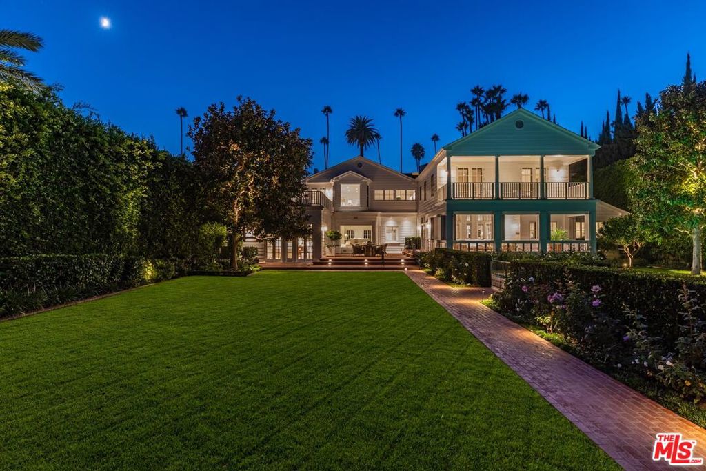 Beverly Hills Trophy Compound on 35,700sqft+ lot. First time available in decades, with renovations by renowned architect Paul Williams. A classic icon on the Flats, rare and exceptional in a most central location. Perfect symmetry greets visitors with a glamorous colonnade and vast gated motor court. Elegant proportions in all public rooms. Signature Oval staircase, light filled living room with fireplace. Adjacent screening room and step-down library/office with French doors to verdant gardens. Formal spacious dining room with fireplace. Veranda overlooks large pool and pool house. Fully lit tennis court with viewing pavilion. Primary suite is a world apart with sitting room, office, marble bath and large walk-in closets. Four additional bedrooms upstairs and 2 staff rooms off kitchen. A vast meadow of grass is the centerpiece of the manicured grounds. 2 bedroom guest house with living room and kitchen is sited above an oversized 3 car garage. Beyond special and unique. Shown to prequalified buyers.
