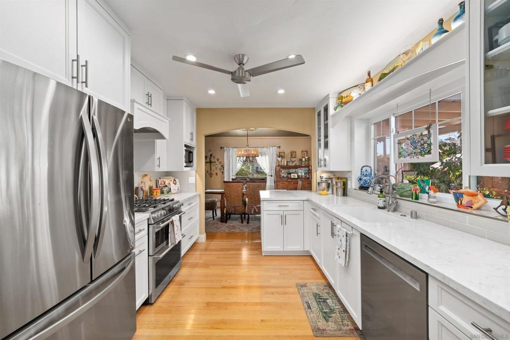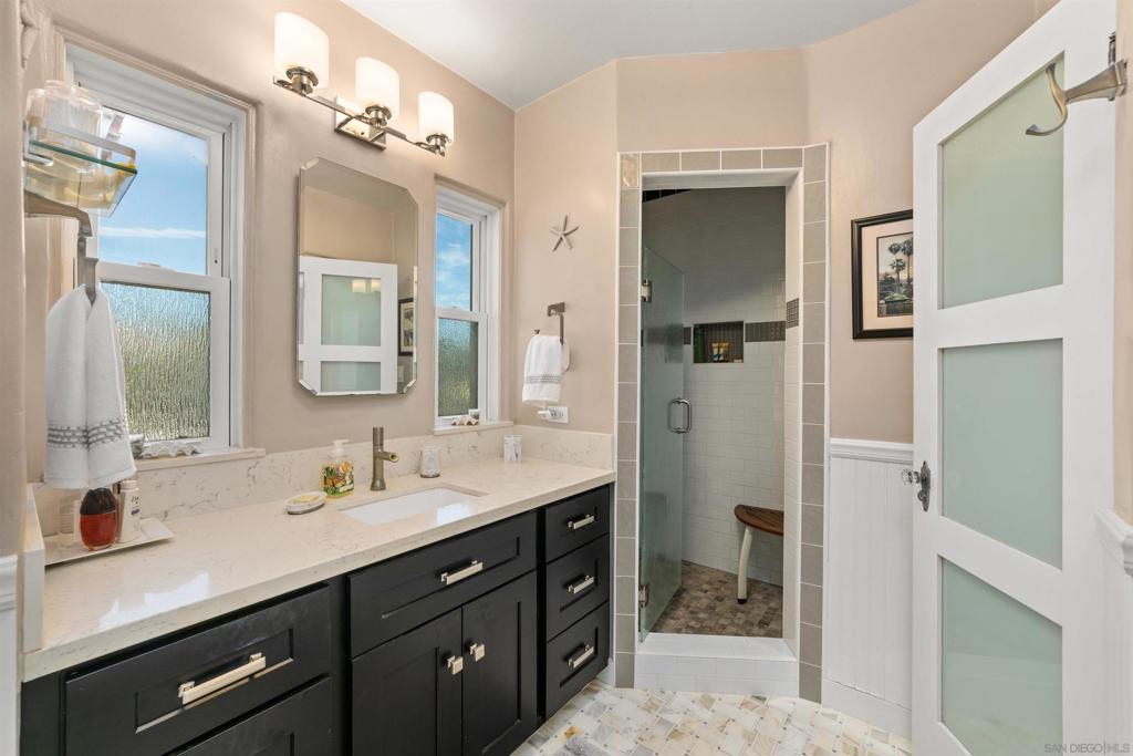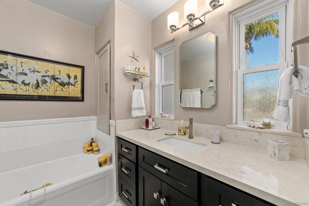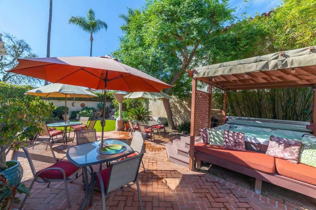 This beautiful home has an incredible outdoor living space, lush garden with rock waterfall feature, large Jacuzzi with a covered seating area, outdoor fire pit, BBQ, and plenty of dining and comfy seating to gather with friends and family members. Enjoy the light and airy feeling this home offers with hardwood flooring throughout. The first level has a formal living room complete with a fireplace and piano. There is also a family room/office with a built-in desk, T.V., and a split AC unit. The kitchen has stainless steel appliances, is well-stocked, and opens up to the dining room with french doors leading out to the backyard. There is also a full bath and a laundry room downstairs. The home has 3 bedrooms, all on the second level, and a full bath with a walk-in shower and a spacious bathtub. The primary bedroom has a queen-size bed, a fireplace, a T.V., a small sitting area, french doors leading out to a balcony, and a split AC unit. Bedroom 2 has a full-size bed and a T.V. Bedroom 3 has a twin trundle that can be used as two twin beds or a queen and a T.V. This home sits on a corner lot with plenty of off-street parking, including the driveway behind the garage. Bikes and beach amenities are ready for your use. The home is fully furnished and has everything you will need to completely relax and enjoy your Coronado vacation.