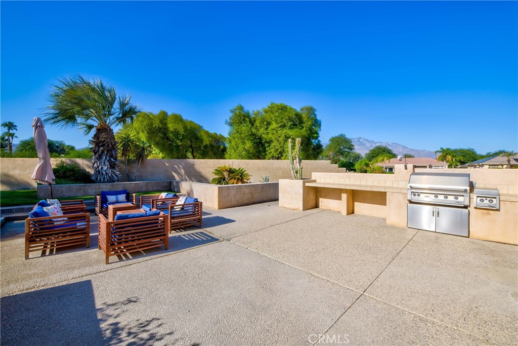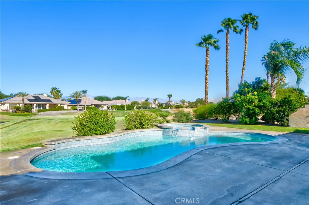 Welcome to 51 Vía Bella, an elegant desert retreat in the prestigious guard gated community of Mira Vista at Mission Hills. This beautiful single story home offers the perfect blend of comfort, sophistication, and resort style living. Spanning approximately 2,724 square feet on a generous 15,000 plus square foot lot, the residence features an open concept layout with soaring ceilings, abundant natural light, and seamless indoor outdoor flow. The spacious great room opens to a private backyard oasis complete with a sparkling pool and spa, built in BBQ, and lush landscaping, ideal for relaxing or entertaining under the desert sky. The chef’s kitchen is equipped with granite countertops, a center island, and ample cabinetry, flowing effortlessly into the dining and living areas. The luxurious primary suite includes patio access, a spa like bath, and dual walk in closets, while the guest suites offer comfort and privacy for family or visitors. With stunning mountain views, 24 hour security, and access to Mission Hills Country Club’s renowned golf, tennis, and social amenities, this Rancho Mirage gem embodies the best of desert living just minutes from world class dining, shopping, and entertainment.