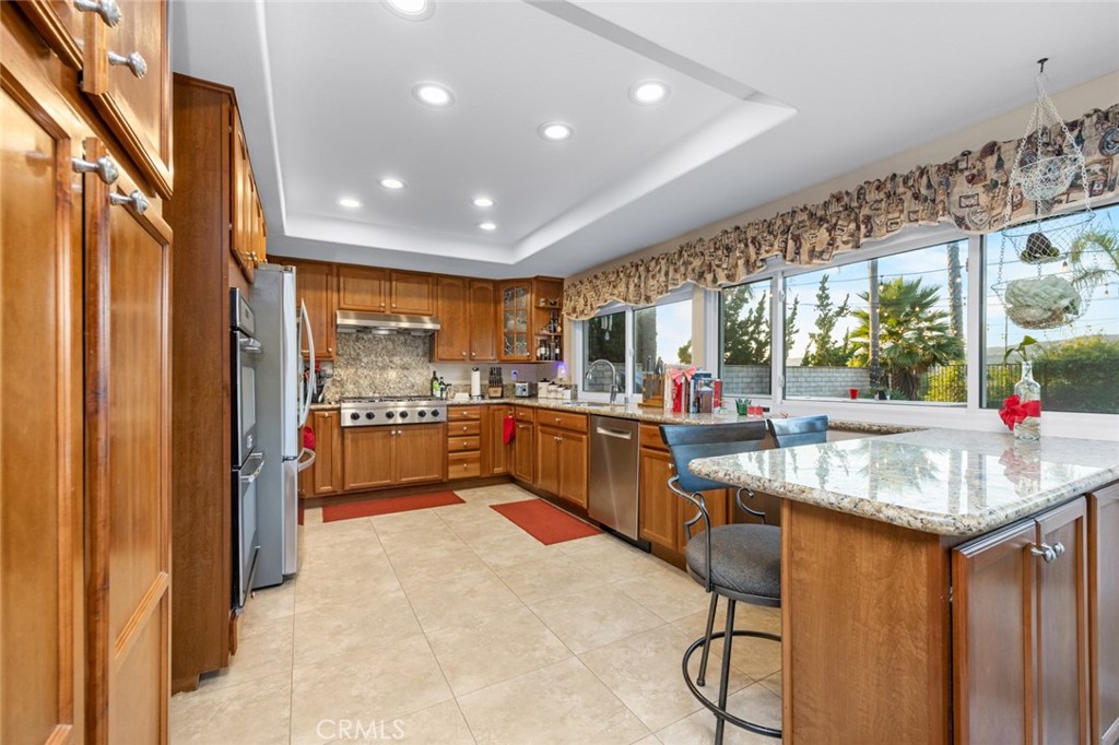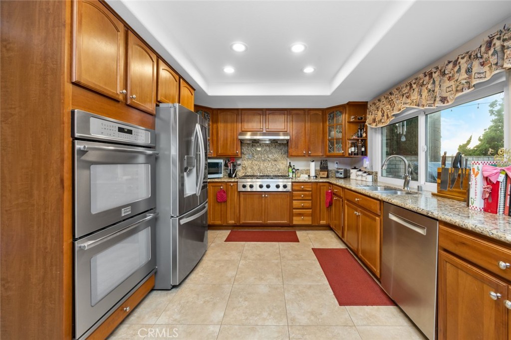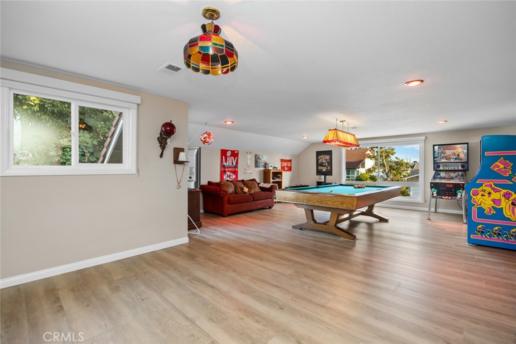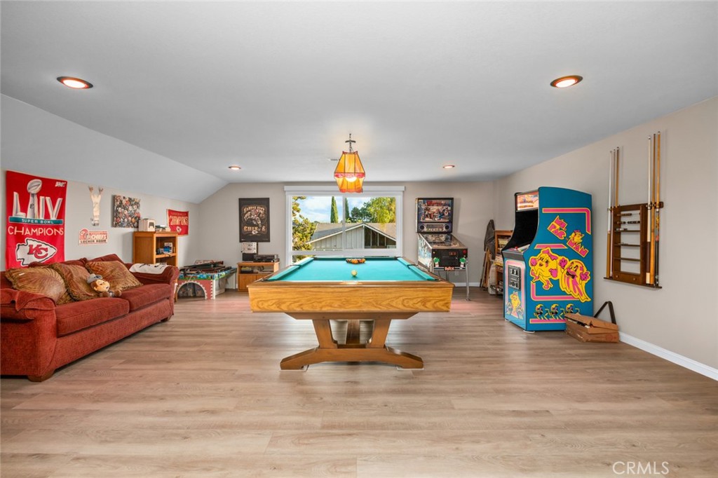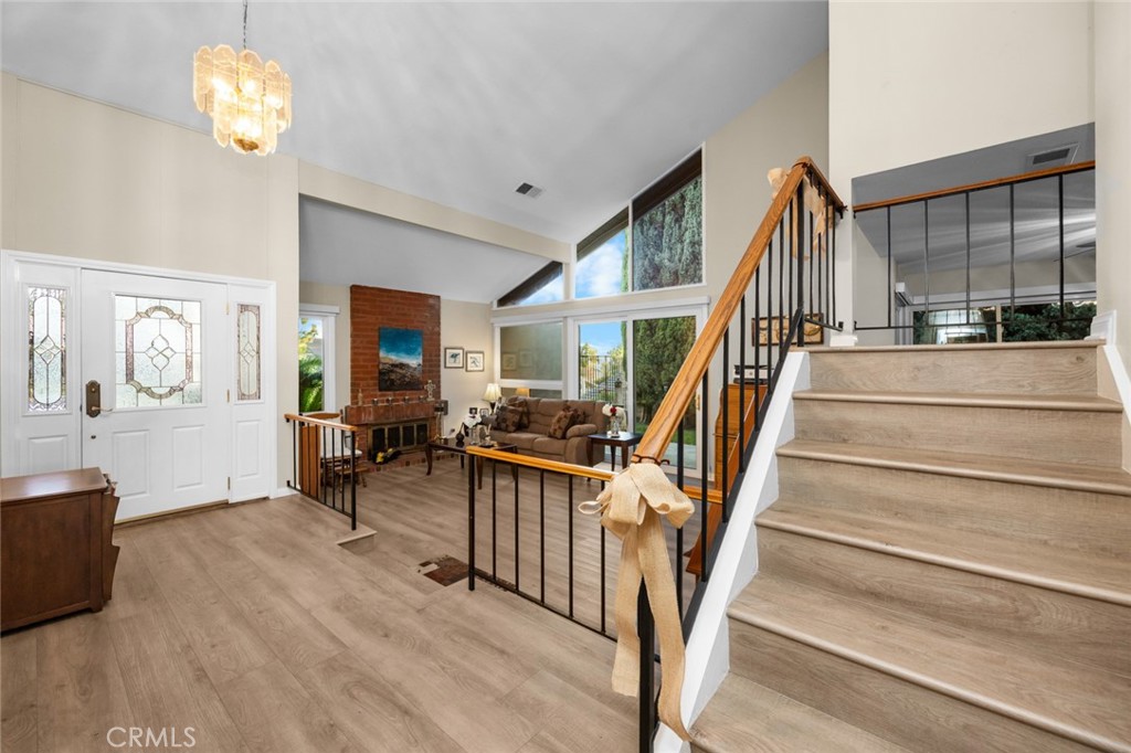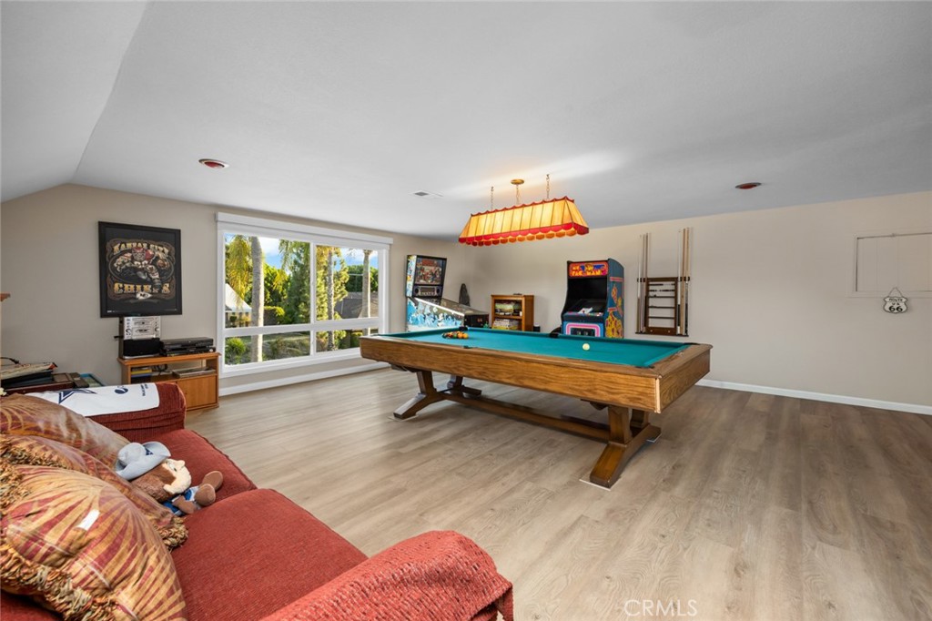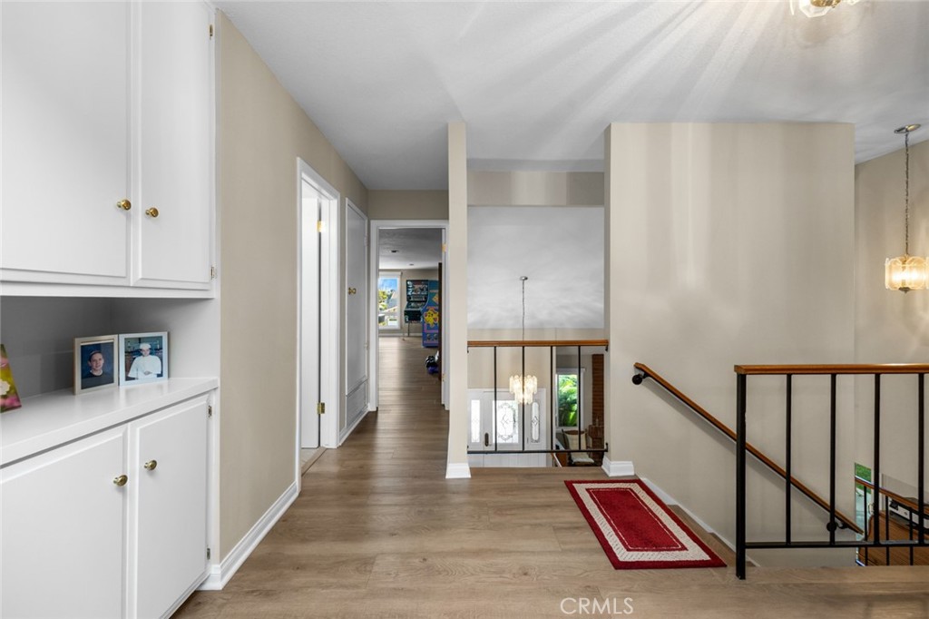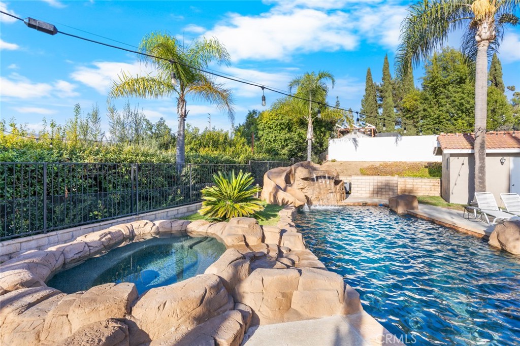 Welcome to 19831 Caprice Dr, a beautifully upgraded 4-bedroom, 4-bathroom home on a quiet cul-de-sac in Yorba Linda. The layout includes a full bedroom and bathroom downstairs, plus a spacious bonus game room with plumbing ready for a bar that can be used as a playroom, theater, or additional bedrooms. The upstairs is also complete with an upstairs master bedroom with a walk-in closet as well as two bedrooms that are perfect for guests or an office. The backyard is a private retreat with a rock pool, jacuzzi, baja shelf, slide, firepit, outdoor kitchen, and poolside bathhouse with shower—perfect for entertaining. Inside, you’ll find a modern kitchen with a double oven and 6-burner range, soft-close cabinetry with pull-outs, and updated flooring throughout. Just off the kitchen is a dining room complete with custom pull-outs perfect for all your large appliances or added storage. Some of the recent upgrades include- Luxury Vinyl Plank and ceramic tile (2023), interior and exterior paint (2023), copper wiring as well as 200 AMP panel (2023), entire HVAC system replaced (2024), newer dual pane vinyl windows, This home is ideally located near Fairmont Elementary and Yorba Linda High School, with convenient access to shopping, dining, and grocery stores. Combining comfort, upgrades, and location, this Yorba Linda gem is move-in ready.