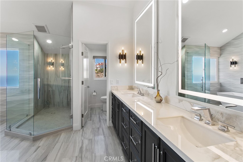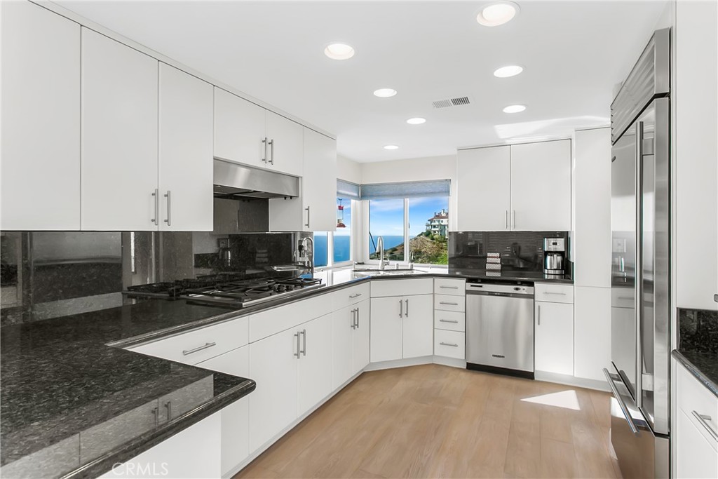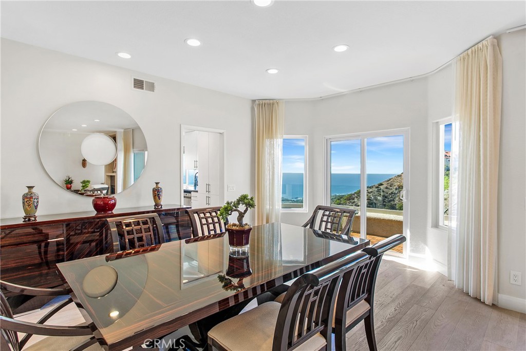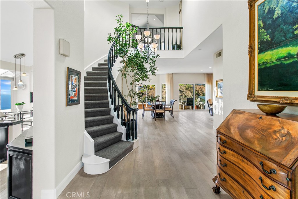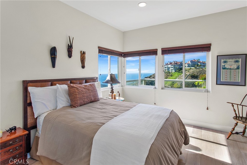 Nestled in the prestigious guard-gated enclave of Laguna Sur, this remarkable home showcases the community’s largest floorplan and boasts breathtaking views of the ocean, Catalina Island, coastline, and surrounding canyons. Thoughtfully designed for both refined entertaining and everyday comfort, the home has been beautifully updated with fresh paint, wide-plank engineered hardwood floors, and a remodeled kitchen with granite countertops, custom cabinetry and modern appliances. The main level welcomes you with an expansive living area and an oversized balcony that seamlessly blends indoor and outdoor living. Downstairs, a large bonus room with its own balcony separates two generous ensuite bedrooms; the perfect retreat for family, guests, or multi-generational living. All bathrooms have been completely remodeled with elegant finishes, including a new bidet and toilet. Additional enhancements include marble-accented fireplaces, one with an electric insert, new interior doors, upscale carpeting in the primary suite and new sliding glass doors to the balcony. The home also features a built-in desk and storage, an enclosed bookcase, a newly designed walk-in closet, and a finished attic. Residents of Laguna Sur enjoy exclusive resort-style amenities including two pools, a spa, and two tennis/pickleball courts. This prime coastal location is just minutes from the Waldorf Astoria and Ritz-Carlton resorts, the El Niguel Country Club, the charm of Laguna Beach Village, the Dana Point Harbor, and a myriad of dining and shopping options in the newly renovated “Lantern District” in Dana Point. Badlands and Sea View parks are just outside the gates and offer an abundance of trails and recreational opportunities for the outdoor enthusiast.