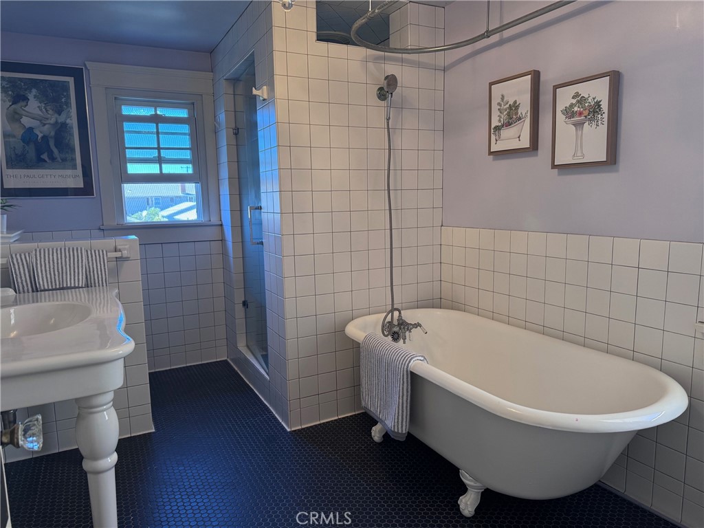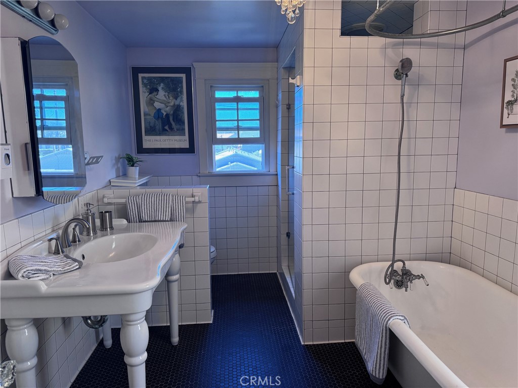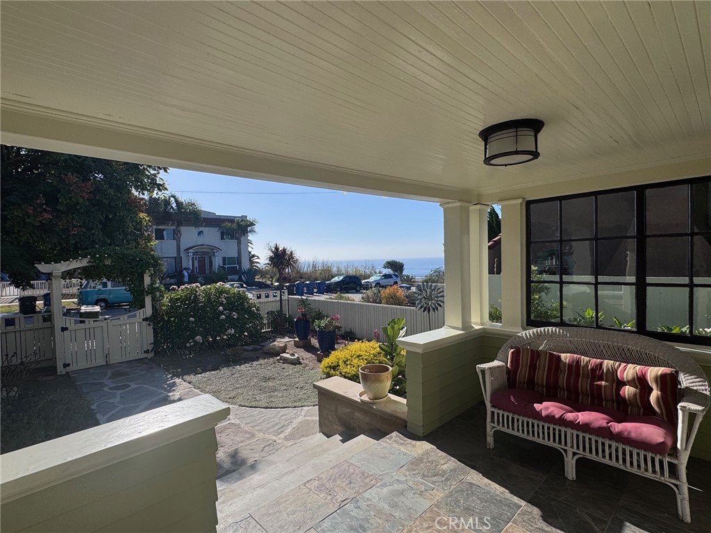 This offering is a rare opportunity to acquire a coastal property with ocean views that can be rented out as a Triplex income property for investment, or as a Single-Family Residence home with additional income from the two apartment units at the back of the lot. There is a 2-story. 1,920 Square Foot, Craftsman Style house built in 1920. The two detached studio cottages, 250 SF each, have their own separate entrance and address. These have been remodeled in recent years. There is a single car garage at the rear of the property. From Carolina you enter through the gated arbor into the garden courtyard that is landscaped with lush plants and natural stone. There are ocean views from the courtyard and from various rooms inside the 3 bed 1.5 bath home. Features include a formal stone entry that flows into a large family room with an abundance of natural light due to the 10’ high coffered ceilings, and large windows that afford views of the ocean. At the front of the house is an enclosed sunroom off the front porch. Other architectural features are French doors, crown-moulding, original doors and hardware, a fireplace (mantle facade), and loads of architectural charm take you back in time to 1920 when this house was originally built. The 3 bedrooms and full bathroom are upstairs, with a small room off of one of the bedrooms with views of the ocean that could be used as a home office. The kitchen features hardwood cabinetry, Caesar Stone counters, a Viking 6-burner range and a laundry room off of the kitchen with access to the back yard. An expansive formal dining room with a built-in hutch is off the main hallway adjacent to the kitchen. The interior of the house has been updated over the years while preserving its historic character and exterior curb appeal. A fully remodeled bathroom with a classic hexagon floor tile, porcelain tiled walls, a claw-foot tub, and copper plumbing. There is forced air heating, upgraded electrical breakers, tankless water heaters and a pitched roof. Located near Cabrillo Beach, a top destination for surfing and wind sailing, Point Fermin Park, known for its lively Summer Concerts by the Sea, and the walking path on Paseo Del Mar, where you can enjoy breathtaking ocean views, and bike rides. San Pedro is one of the last affordable Coastal Communities, and values are on the rise with all of the investment in the peninsula and astute investors who see the future potential in the revitalization of this seaside community.